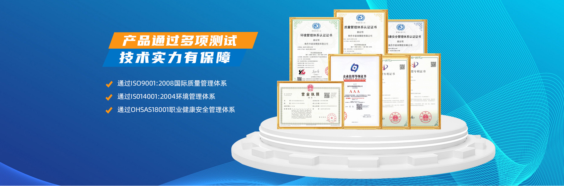 - 焦作市富泉塑膠有限公司,創(chuàng)立于1995年,是一家集研發(fā)、設計、生產(chǎn)、銷售為一體的大型管材企業(yè)。公司位于太極故里、黃河之濱一一河南焦作溫縣。公司占地128畝,現(xiàn)有職工210余人,其中具有中技術(shù)職稱的19人。生產(chǎn)、檢驗設備58臺(套),包括PVC實壁管生產(chǎn)線11套、PE實壁管生產(chǎn)線12套、HDPE雙壁波紋管生產(chǎn)線6套、PVC雙壁波紋管生產(chǎn)線5套,檢驗設備14臺(套)。主要產(chǎn)品有:Φ20mm-630mm、各種壓力規(guī)格的PVCU、PVC-M、PE給水管材,PVC-U節(jié)水灌溉管材,HDPE燃氣和礦用管材,DN200-800mm的HDPE、PVC雙壁波紋管及各種噴灌、滴灌工程材料。承接大中型市政供排水、飲水安全及節(jié)水灌溉等工程。 富泉塑膠公司重視產(chǎn)品的質(zhì)量、安全、環(huán)保和節(jié)能,在同行業(yè)中率先完成了“新華節(jié)水產(chǎn)品認證”,全方面通過ISO9001:2008國際質(zhì)量管理體系、IS014001:2004環(huán)境管理體系和OHSAS18001職業(yè)健康安全管理體系的一體化導入,并建立起規(guī)范的現(xiàn)代企業(yè)管理體系。公司以“質(zhì)量”為先導,采用質(zhì)量跟蹤、多環(huán)節(jié)把關(guān)的方法,組建具有行業(yè)水準的企業(yè)技術(shù)檢測中心,常年委托水利部節(jié)水灌溉設備檢測中心、河南省產(chǎn)品質(zhì)量監(jiān)督檢驗院對產(chǎn)品跟蹤檢測,并由中國人民保險公司承保產(chǎn)品質(zhì)量。公司連續(xù)多年被河南省水利廳確定為“安全飲水設備、節(jié)水灌溉設備”定點生產(chǎn)企業(yè),并獲得“中國名優(yōu)產(chǎn)品”“質(zhì)量、服務、信譽AAA企業(yè)”“河南省**產(chǎn)品”“河南省水利企業(yè)”“河南省守合同、重信用企業(yè)”等榮譽稱號?! 「蝗苣z公司堅持“用戶為上”的服務理念,長期以來,全方面關(guān)注客戶價值,不斷提升服務水平。服務隊伍常年為客戶的產(chǎn)品設計、施工、安裝提供合理的方案和全程細致、周到、**、快捷的技術(shù)服務。公司自成立以來,一直堅持以人為本的宗旨,塑造企業(yè)形象,并致力于新產(chǎn)品的開發(fā),憑借雄厚的技術(shù)開發(fā)能力,先進的工藝制造流程,嚴格的質(zhì)量管理保證體系,優(yōu)良的售后服務網(wǎng)絡,已成為河南省大的飲水、灌溉及排水管材設備制造商。產(chǎn)品暢銷全國,而且還以公司雄厚的綜合實力在業(yè)界中占據(jù)著重要的地位。
